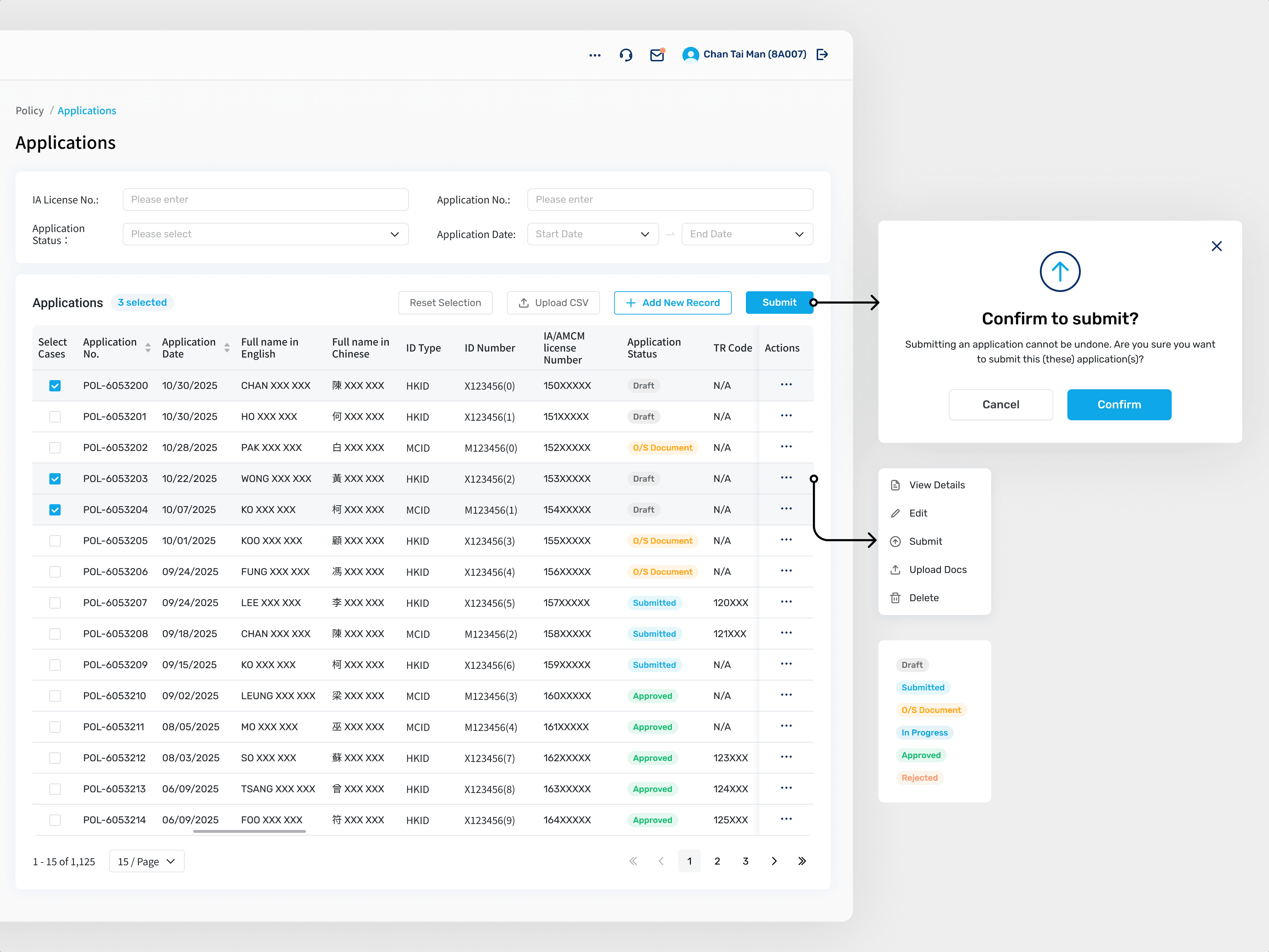 The record details were redesigned into a right-side slide-in panel, aligning with the interaction pattern used across form pages. This unified approach creates a lighter, more focused experience and eliminates unnecessary page transitions. By keeping users within the same screen context, the new structure not only improves operational efficiency but also maintains a consistent, modern interaction model throughout the system.